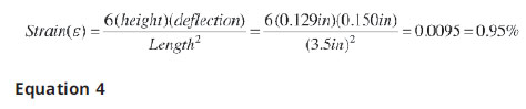 In contrast, the 1% strain was achieved nearly instantly in my test when the part deflected 0.150 in. (see Equation 4) showing a 0.95% stain developed). After initial loading of the 1 lb. sample, the part continued to deflect due to its viscoelastic characteristics. The deflection over the next four minutes is shown in Table 1 and graphed in Figure 2.