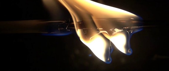 Snapshot of flames during experiments correlating material flammability in normal and microgravity environments. Courtesy of NASA.
